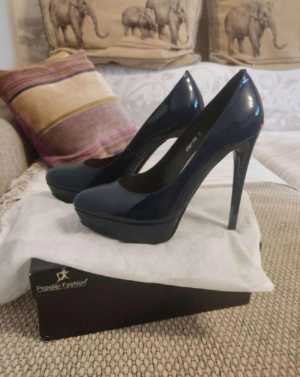 Торга нет. Продам новые туфли женские тёмно-синего цвета лакированные, размер 37, каблук 12,5 см.