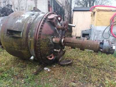 Продам химический реактор из нержавеющей стали с мешалкой. Объем котла 5 м3. В наличии 2 реактора. Состояние на фото.