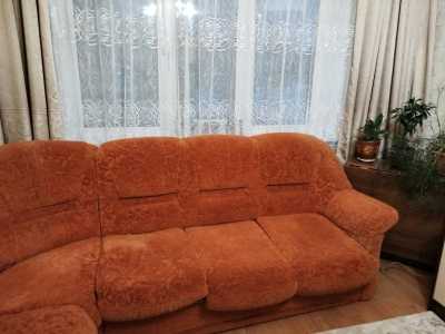 Диван угловой в среднем состоянии со спальным местом. Диван очень вместительный, много мест хранения.